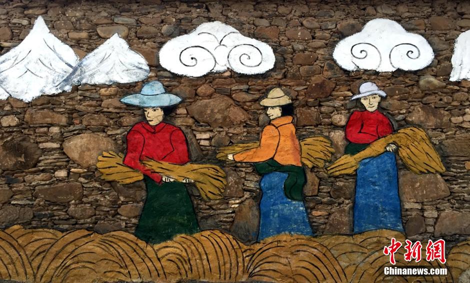 Paintings on the wall of a Tibetan village. (Chinanews/Liu Zhongjun)