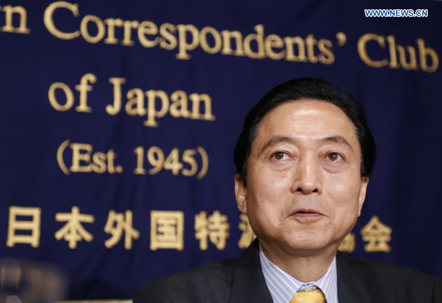 | Former Japanese Prime Minister Yukio Hatoyama speaks during a press conference in Tokyo, Japan, April 22, 2015. Hatoyama called on Prime Minister Shinzo Abe to follow the Murayama Statement and to include the key words in his war anniversary statement, adding that he has "considerable anxieties" that Abe's statement may increase tensions among peoples of the Asian region. (Xinhua/Stringer) |
