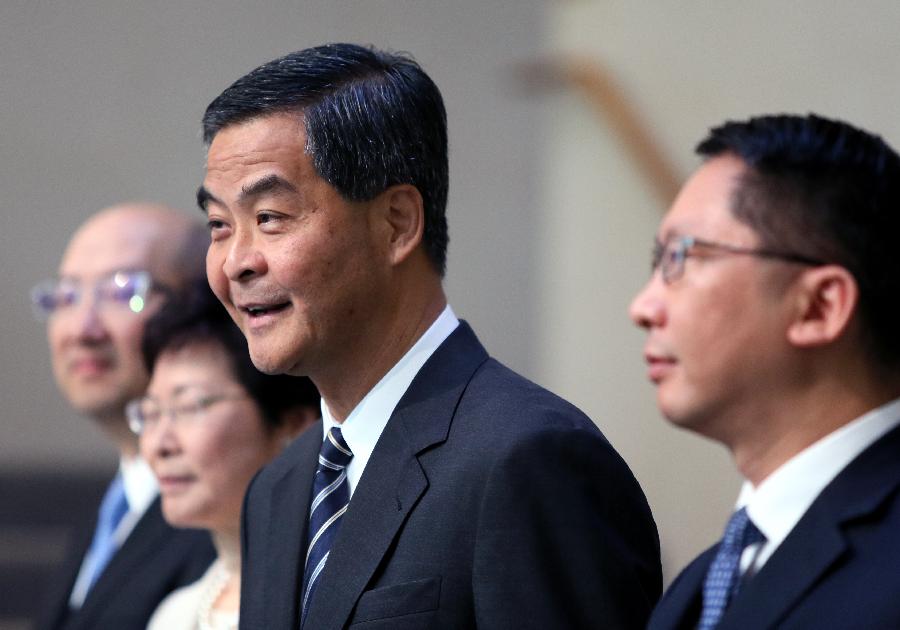 | Hong Kong Chief Executive Leung Chun-ying answers questions during a press conference in Hong Kong, south China, April 22, 2015. Hong Kong government on Wednesday revealed a constitutional reform package designed for election of the Special Administrative Region(SAR)'s next top leader by universal suffrage in 2017. Leung said earlier on Wednesday that "today is an important milestone for Hong Kong's democratic development". (Xinhua/He Jingjia) |