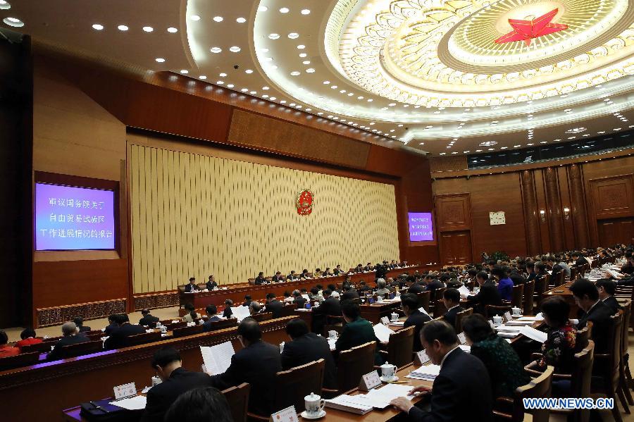 The second plenary session of the 14th meeting of the 12th National People's Congress (NPC) Standing Committee is held in Beijing, China, April 22, 2015. Zhang Dejiang, chairman of the NPC Standing Committee, attended the meeting. (Xinhua/Liu Weibing)