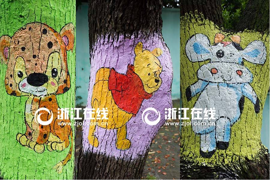 On the Tianyun Road of Hangzhou, cartoon characters are painted all over the trees on both sides of the road. Many people come and take pictures with these trees.