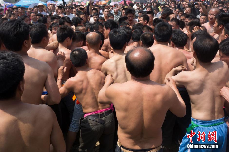 The third day of the third lunar month, a traditional festival of many ethnic minorities in China, falls on April 21 this year. A “firework festival” was held in Sanjiang Dong Autonomous County of south China’s Guangxi. Over 200 men from Guangxi, Guizhou and other regions took part in an interesting celebration activity “firework scramble”. The game has a history of over 200 years, which is also called the “oriental rugby”. (Chinanews/Huang Weiming)