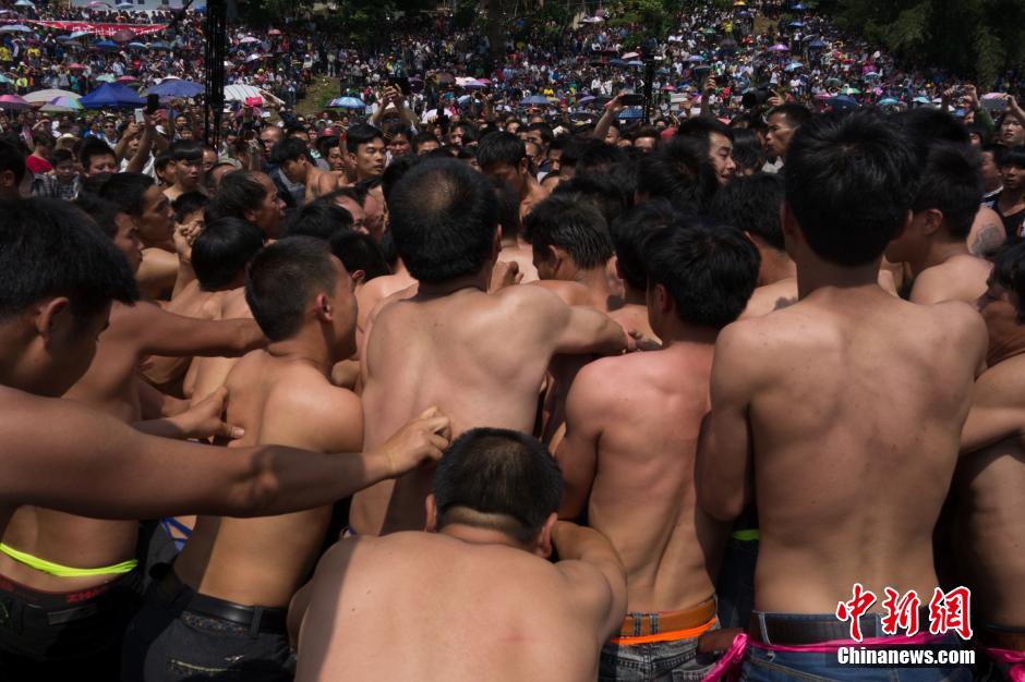 The third day of the third lunar month, a traditional festival of many ethnic minorities in China, falls on April 21 this year. A “firework festival” was held in Sanjiang Dong Autonomous County of south China’s Guangxi. Over 200 men from Guangxi, Guizhou and other regions took part in an interesting celebration activity “firework scramble”. The game has a history of over 200 years, which is also called the “oriental rugby”. (Chinanews/Huang Weiming)
