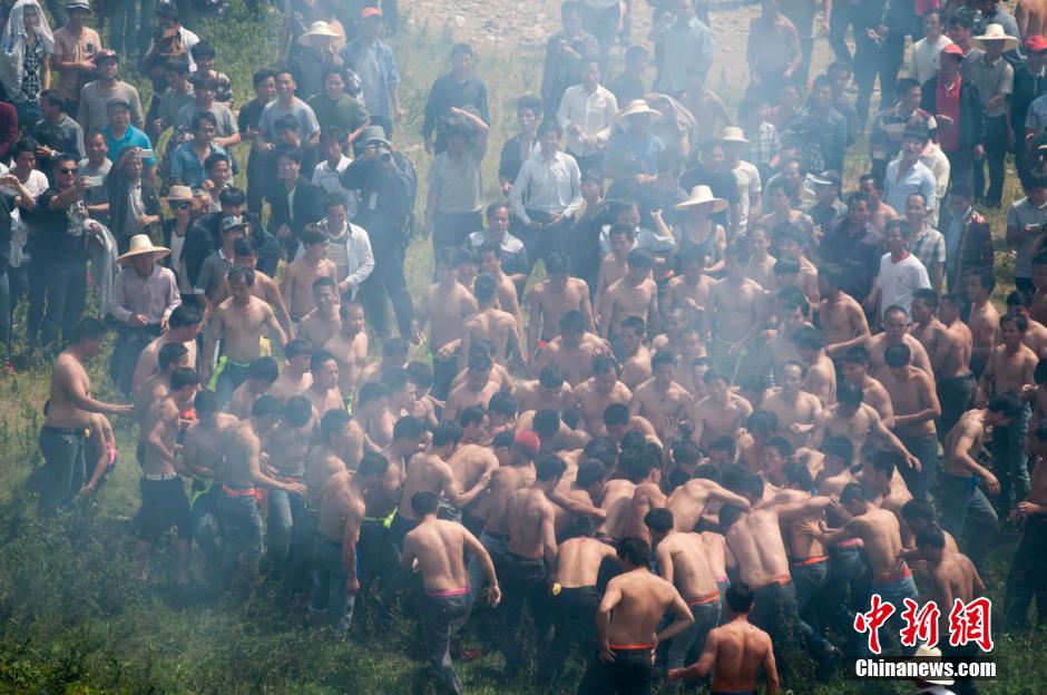The third day of the third lunar month, a traditional festival of many ethnic minorities in China, falls on April 21 this year. A “firework festival” was held in Sanjiang Dong Autonomous County of south China’s Guangxi. Over 200 men from Guangxi, Guizhou and other regions took part in an interesting celebration activity “firework scramble”. The game has a history of over 200 years, which is also called the “oriental rugby”. (Chinanews/Huang Weiming)