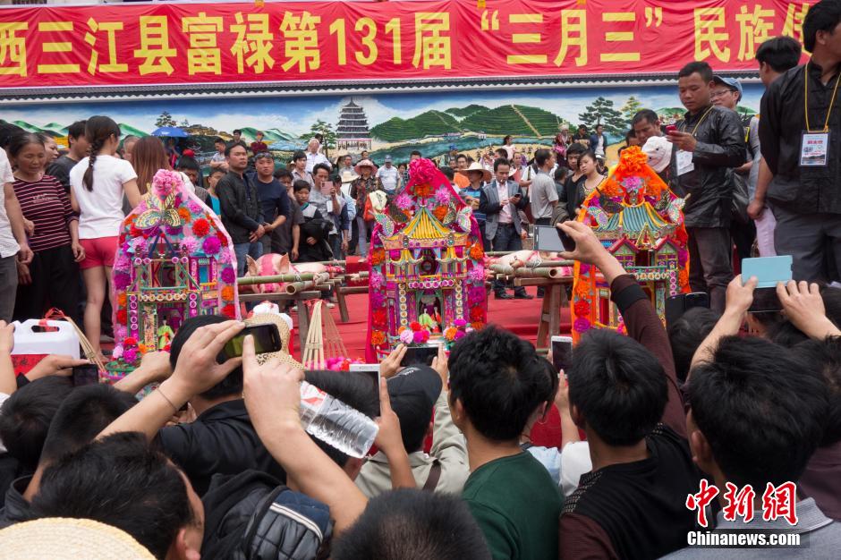 The third day of the third lunar month, a traditional festival of many ethnic minorities in China, falls on April 21 this year. A “firework festival” was held in Sanjiang Dong Autonomous County of south China’s Guangxi. Over 200 men from Guangxi, Guizhou and other regions took part in an interesting celebration activity “firework scramble”. The game has a history of over 200 years, which is also called the “oriental rugby”. (Chinanews/Huang Weiming)