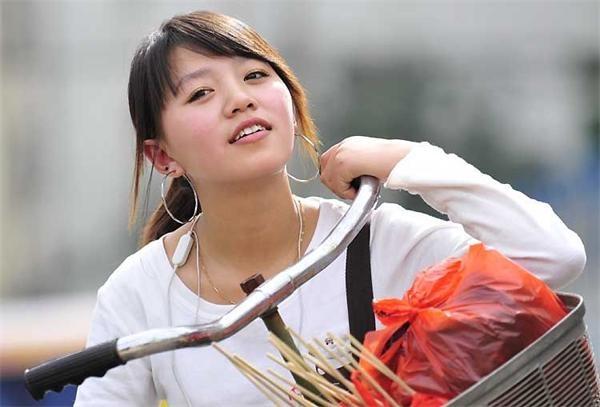 19-year-old Kang Xiaohan sold sugarcoated haws on a stick near Xi'an Jiaotong University.