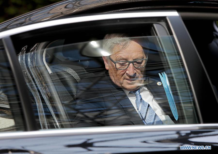 European Commission President Jean-Claude Juncker arrives at the European Union (EU) extraordinary summit to discuss how to address the migratory pressures in the Mediterranean at the EU headquarters in Brussels, Belgium, on April 23, 2015. Only 28 migrants out of 700 seem to have survived by far after their boat capsized some 120 miles south of Lampedusa, Italy on Saturday night. (Xinhua/Zhou Lei)