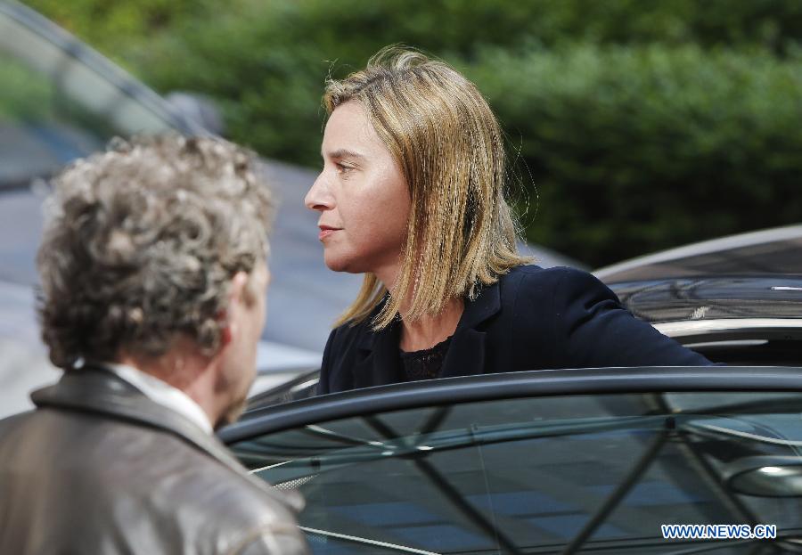 European Union High Representative for Foreign Affairs Federica Mogherini arrives at the European Union (EU) extraordinary summit to discuss how to address the migratory pressures in the Mediterranean at the EU headquarters in Brussels, Belgium, on April 23, 2015. Only 28 migrants out of 700 seem to have survived by far after their boat capsized some 120 miles south of Lampedusa, Italy on Saturday night. (Xinhua/Zhou Lei)