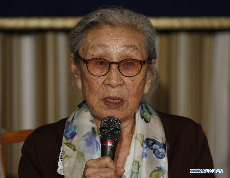 Kim Bok-tong, a former "comfort woman", speaks during a press conference in Tokyo, Japan, April 24, 2015. (Xinhua/Stringer)