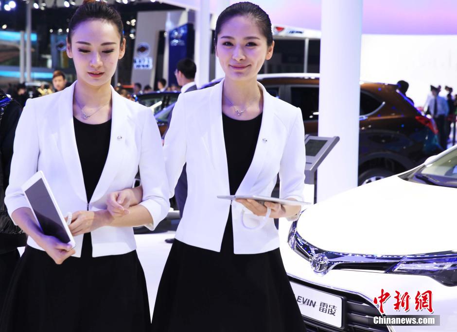 The 2015 Shanghai International Automobile Industry Exhibition have seen beautiful women busy with promoting, displaying, or advertising new energy cars, concept cars, intelligent cars and other kinds of cars. The crowds will not see the coquettish and scantily clad models at this exhibition. (Chinanews.com/Pan Suofei)
