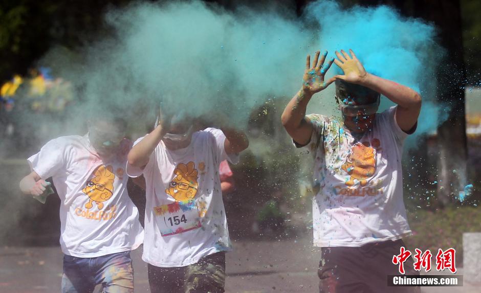 Thousands of young people participate in the five-kilometer 'Color Run' at Xuanwu Lake Park in Nanjing on April 22, 2015. (CNS/Yang Bo)