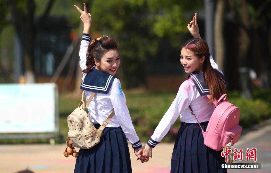 Thousands of young people participate in the five-kilometer 'Color Run' at Xuanwu Lake Park in Nanjing on April 22, 2015. (CNS/Yang Bo)