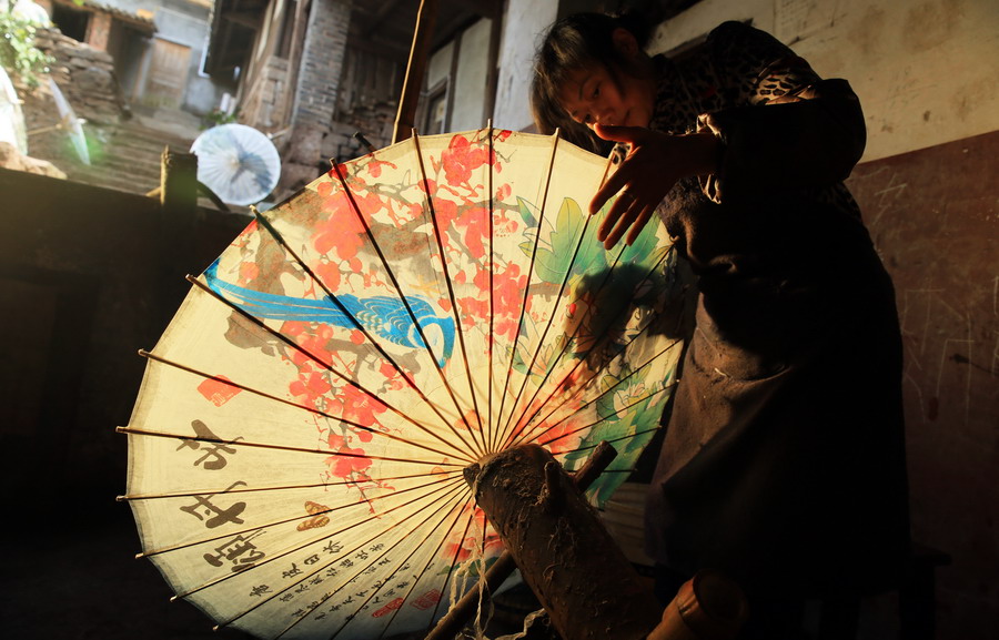 Oiled paper umbrella has become romantic scenery in streets and lanes of Luzhou city, southwest China's Sichuan province. People in the city have been making oiled paper umbrellas for more than 400 years, and this craft is a national intangible cultural heritage.