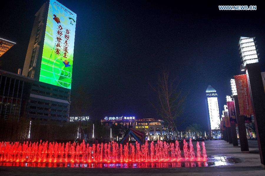 Photo taken on April 24, 2015 shows the night view of Suzhou, city of east China's Jiangsu Province and the host city of the 53rd Table Tennis World Championships. (Xinhua/Yang Lei)