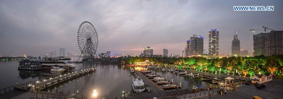 Photo taken on April 24, 2015 shows the night view of Suzhou, city of east China's Jiangsu Province and the host city of the 53rd Table Tennis World Championships. (Xinhua/Yang Lei)