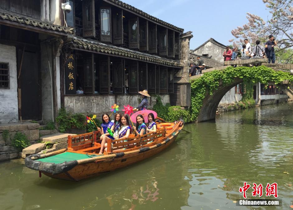 Yulia, Zhang Jinxiao and other supermodels appear in Zhouzhuang, east China's Jiangsu Province On April 23, 2015. Yulia is the winner of the World Super Model Contest Global Finals. (Chinanews.com/Huang Ying)