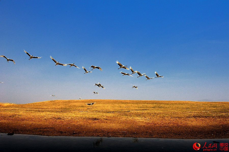 The red-crowned crane is a beautiful and precious bird. According to statistics, by the end of 2010, there were only 1,500 red-crowned cranes in the world and 1,000 of them would spend the winter in China. In Zhalong wetland in Qiqihar, northeast China’s Heilongjiang province, a nature protection area has been established to better protect the red-crowned crane. (Photo source: people.cn)