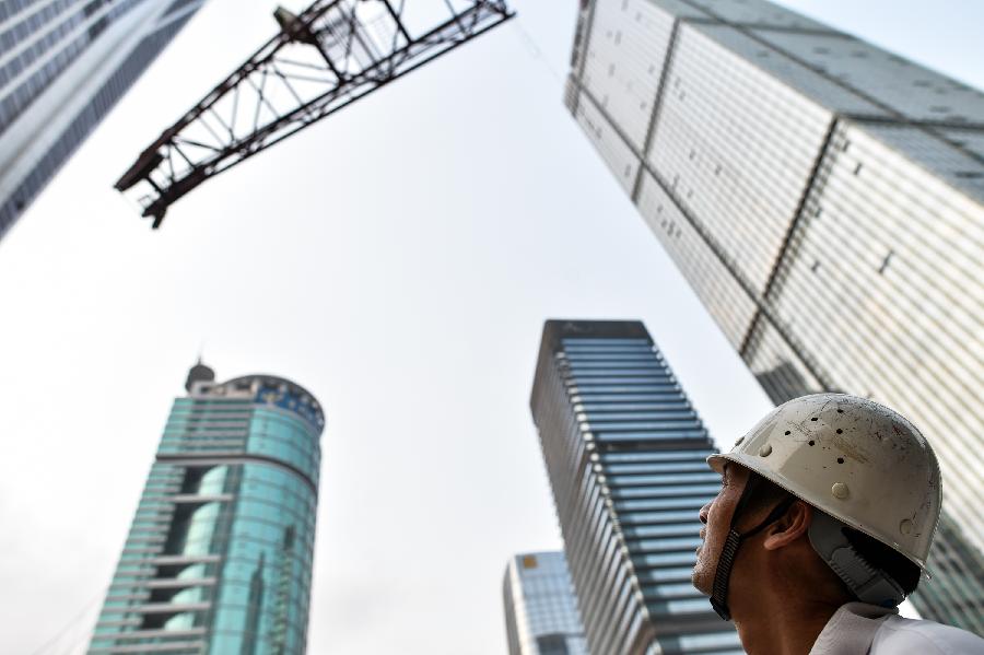 | Photo taken on April 20, 2015 shows Wang Hua, a tower crane operator, looks at the dismantlement of a tower crane in Shenzhen, south China's Guangdong Province. Wang Hua, a 50-year-old from central China's Henan Province, is a good hand in operating tower crane. Though he used to be a security guard when he was young, he quickly grew into an excellent tower crane operator due to his diligence and love of learning. He was engaged in many larger construction projects like the new site of CCTV and the Water Cube, and the current project he is working in is the Pingan International Financial Center in Shenzhen. It's dangerous and lonely to work on a tower crane to a height of a few hundred meters, but Wang Hua has no thought of retiring yet, not until he would build a higher building after the Pingan International Financial Center. (Xinhua/Mao Siqian) |