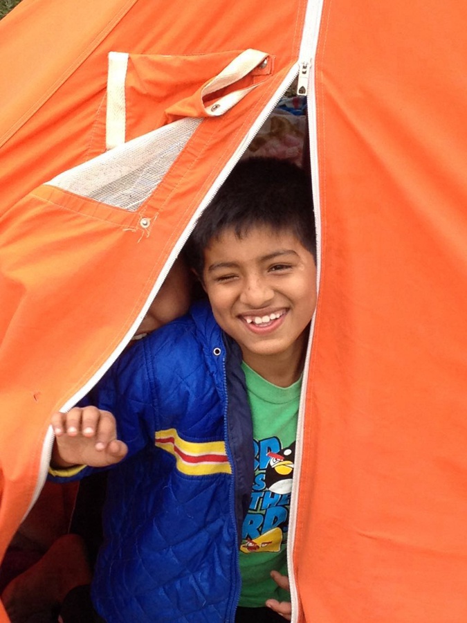 Disaster does not expunge the innocent smile on children. (People's Daily/Lyu Pengfei)