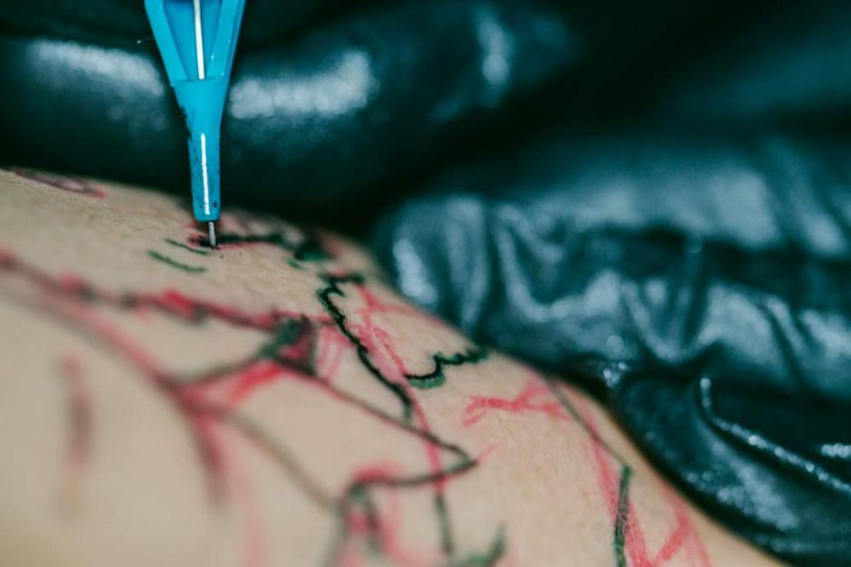 According to A Biao, tattoo artists have to use the ink-dipped needles to create a design on the body before they use the tattoo gun with disposable needles inside.(Photo/cqnews.net)