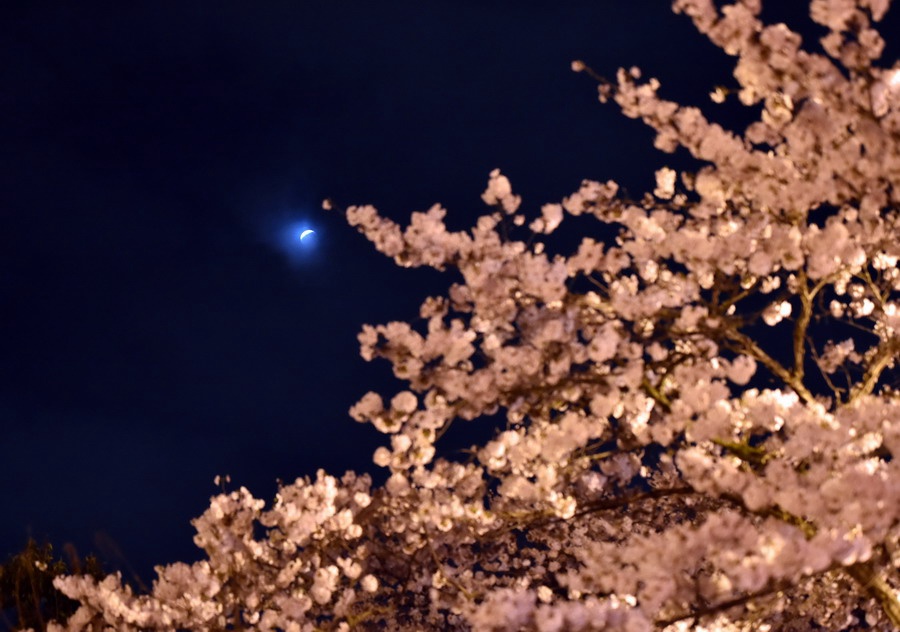 Cherry blossoms under lunar eclipse in Utsunomiya, Japan, April 4, 2015. (Xinhua/AFP)