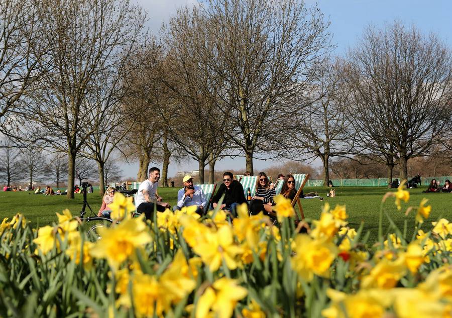 People enjoy spring at the Central Park in London, Britain on April 7. (Xinhua/Han Yan)