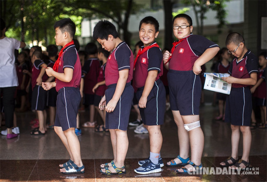 | Pupils walk into hall for semester opening ceremony in Shunde, south China's Guangdong province on Sept. 1, 2014. (Photo/Chinadaily.com.cn) |