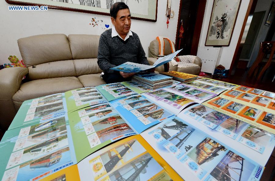 Xin Baozhong sorts out the train platform tickets he collected at home in Tangshan, north China's Hebei Province, May 2, 2105. Xin has collected over 1,800 train platform tickets from about 100 train stations all over China since 1999. (Xinhua/Mu Yu)
