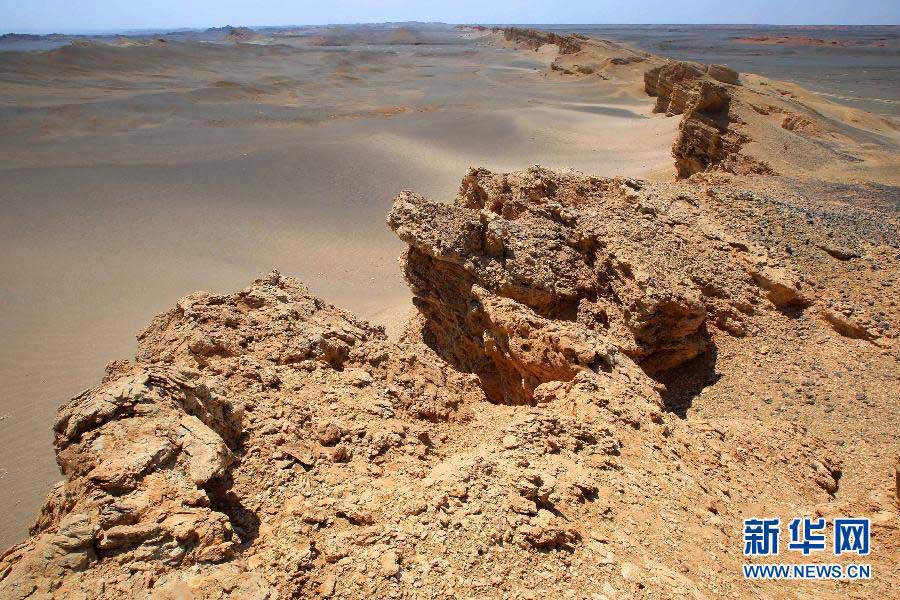 A Yardang, known as the demon castle, is formed as a result of wind erosion. Hami is home to the most heavily concentrated Yardangs in China. These Yardangs are scattered in the area extending to 400 kilometers from east to west and 20 kilometers from south to north. (Xinhua/Cai Zengle)