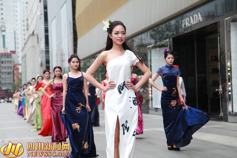 More than 20 future flight attendants stage a flash mob show in Chengdu, capital of southwest China's Sichuan province, May 3, 2015. (Photo/newssc.org)