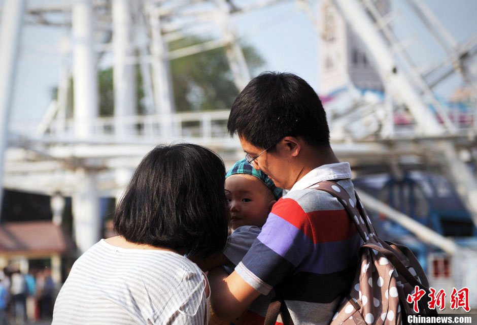 A couple with their baby take photos together. (CNS/Zhang Yue)