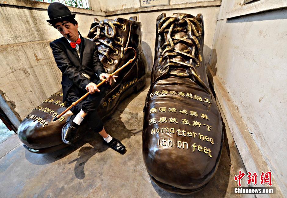 | Zheng Chenggan, 67, made the world's largest copper shoes in Fuzhou city, southeast China's Fujian province. (CNS/Zhang Bin) |