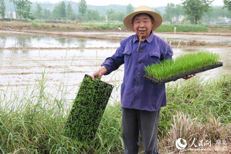 A farmer selects the seedlings in Gucheng county, south China's Hubei province. (People's Daily Online/Wang Xuanling)
