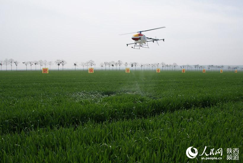 The copter appears in the growing area of wheat in Fuping County, northwest China's Shaanxi Province. (People's Daily Online/Zhang Wei)