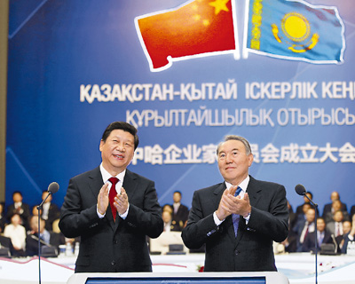 | Xi and Nazarbayev attended the founding conference of China-Kazakhstan Entrepreneurs Committee. |