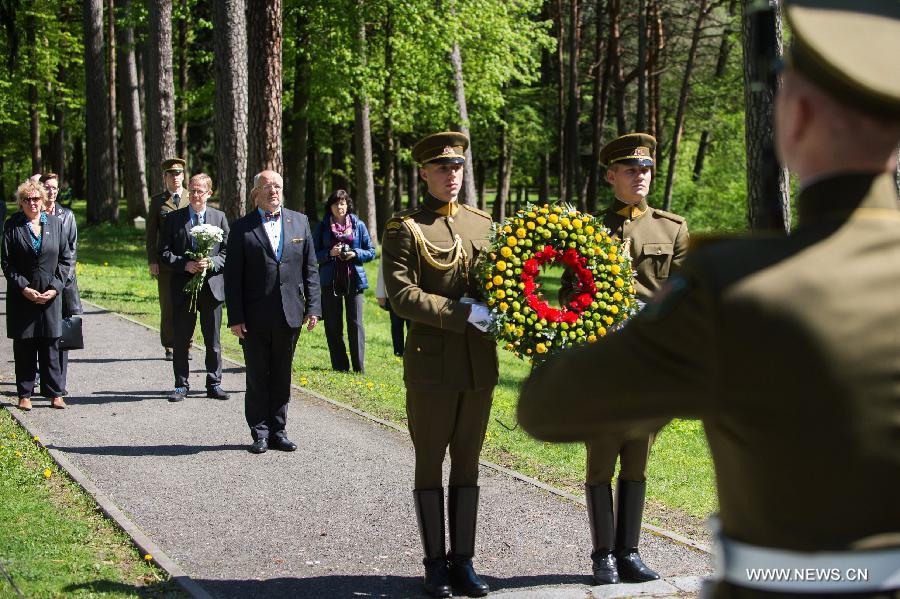 People attend the commemoration marking the 70th anniversary of World War II victory in Europe in Vilnius, Lithuania, on May 8, 2015. (Xinhua/Alfredas Pliadis)