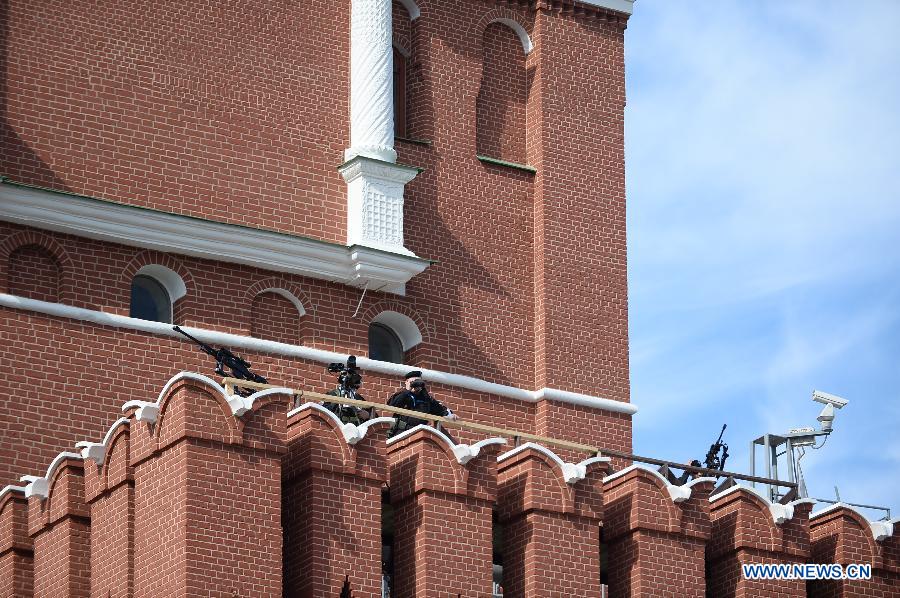 Snipers are seen on guard at the Red Square before a military parade marking the 70th anniversary of the victory in the Great Patriotic War, in Moscow, Russia, May 9, 2015. (Xinhua/Jia Yuchen)