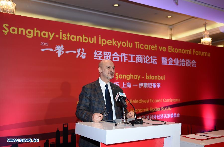 Turkey's Foreign Economic Relations Board President Omer Cihad Vardan delivers a speech at the "Belt and Road Initiative" Trade and Economy Forum in Istanbul, Turkey, on May 8, 2015. (Xinhua/He Canling)