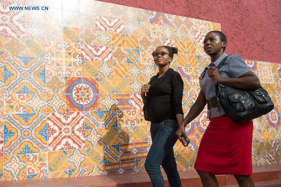 Georgie Charlot (R) and her daughter walk on a street in Port-au-Prince, Haiti, May 9, 2015. Georgie Charlot is a single mother, who gave birth to her first and only daughter at 19. In Haiti, the Mother's Day is celebrated on the last Sunday of May. (Xinhua/Luz Sosa)