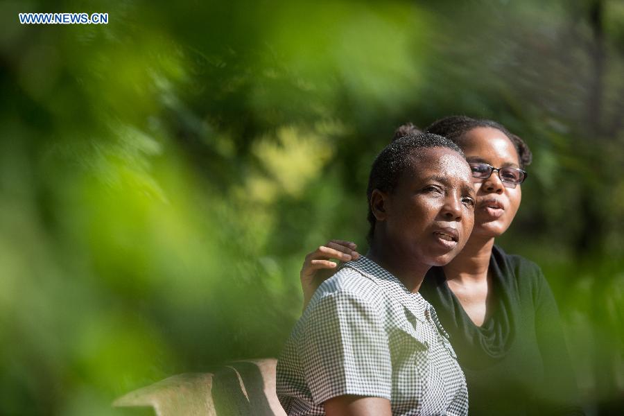 Georgie Charlot (L) and her daughter rest at a park in Port-au-Prince, Haiti, May 9, 2015. Georgie Charlot is a single mother, who gave birth to her first and only daughter at 19. In Haiti, the Mother's Day is celebrated on the last Sunday of May. (Xinhua/Luz Sosa)