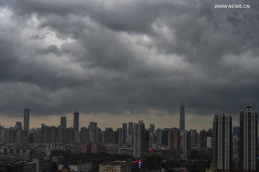 Photo taken on May 11, 2015 shows dark clouds over the sky of Shenzhen, south China's Guangdong Province. A heavy rainstorm hit the city Monday. The local meteorological bureau issued red alert for rainstorms. (Xinhua/Mao Siqian)