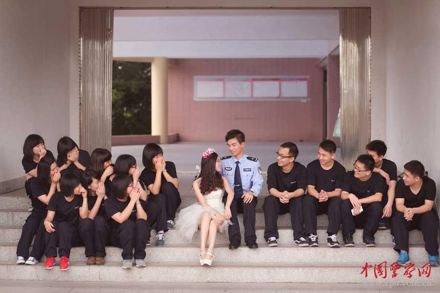 Wedding photos of a group of police officers were released recently by the official WeChat of Fuzhou Municipal Bureau of Public Security in southeast China's Fujian Province. The photos, themed "When police uniforms meet wedding gowns", have well shown the police officers' romantic love that is little-known to the public. (Photo/cpd.com.cn)