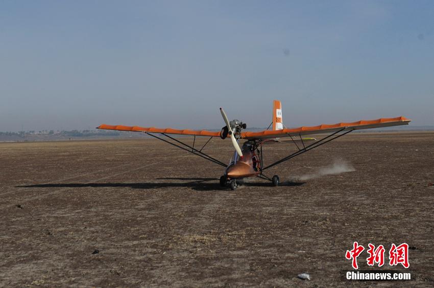 45-year-old Yang Shijun successfully flies his self-made light plane to the height of 200 meters in Changchun, northeast China’s Jilin province on May 10, 2015. His plane had made two trail flights previously. After the flight in May 10, the plane had completed 2.5 hours flight time and 10 taking-offs and landings. According to Yang, he and his friends are making three two-seater planes now, so as to enjoy more fun of flying. (Chinanews/Zhang Yao)