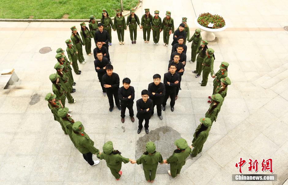 Graduates of Anhui University wear different kinds of costumes to take creative graduation photos on May 10. As the graduation season comes, graduates begin to take creative and stylish graduation photos to memorize their college life. (Chinanews/Han Suyuan)