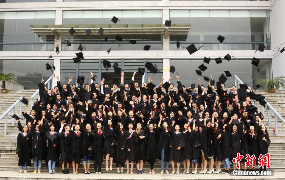 | Graduates of Anhui University wear different kinds of costumes to take creative graduation photos on May 10. As the graduation season comes, graduates begin to take creative and stylish graduation photos to memorize their college life. (Chinanews/Han Suyuan) |