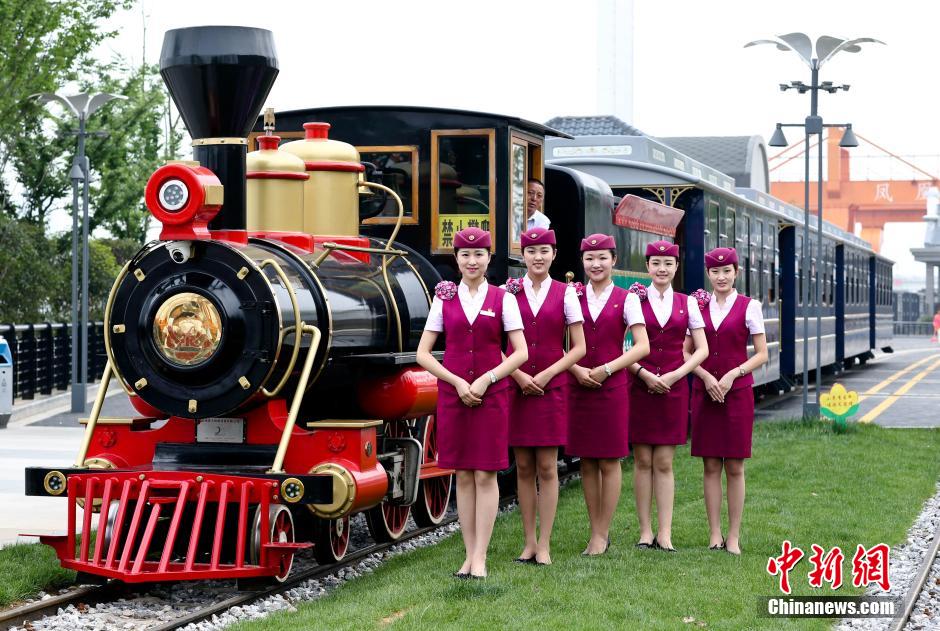 High speed rail stewardesses visit the oldest train station in Nanchang. (Chinanews/Zhang Xuedong)