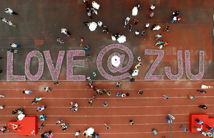 A group wedding for 360 couples is held in Zhejiang University, east China's Zhejiang province, May 10, 2015. Last Sunday was also the 118th founding anniversary of Zhejiang University. Family members, teachers and students witnessed the happiness of the 360 couples who have graduated from the university. (Photo/zjol.com.cn)