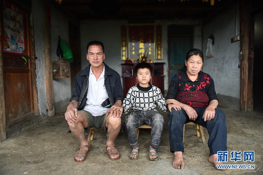 Yang Zhanyi and his grandparents at home. Yang Zhanyi, 10, is a student at Dongsheng Primary School. His mother left him when he was eight months old. His father only joins them during the Chinese Spring Festival. (Xinhua/Lu Boan)