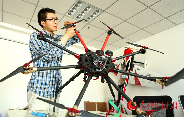 Yang debugs a multi-rotor UAV on May 11, 2015. (People’s Daily Online/Mu Jian)