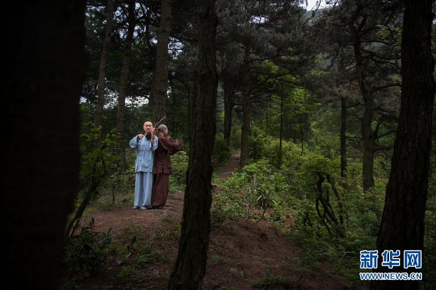 Located in central China’s Hubei province, Tiantai Temple is famous for its Buddhist music. Young Buddhist monks and nuns play beautiful music with violins, cellos, pianos and other instruments. Playing Buddhist music is their way of self-cultivation. In 2008, Tiantai Temple formed its own band – Guangxuan Art Troupe, which now has over 40 members. The band is often invited to perform music and spread Buddhism outside the temple. (Xinhua/Cheng Min)